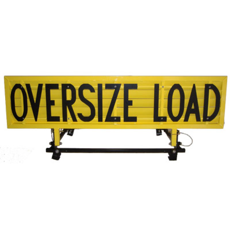 1192000003 - The all aluminum BTI OSL Louvered Sign measures 60.5 inches wide by 14.5 inches tall with 5 aluminum louvers welded inside the framework. The laser cut letters are BTI's own patent pending design and are removable and replaceable. The sign is 5' 1/2" wide by 14 1/2" tall with 5 inch mounting legs and weighs only 34 pounds. The mounting frame is made of steel with steel mounting brackets. The frame Mounts securely to the cross bar members of most roof racks. The sign folds down and is held in place with pins when not in use. Total weight of sign and frame is 44 lbs.